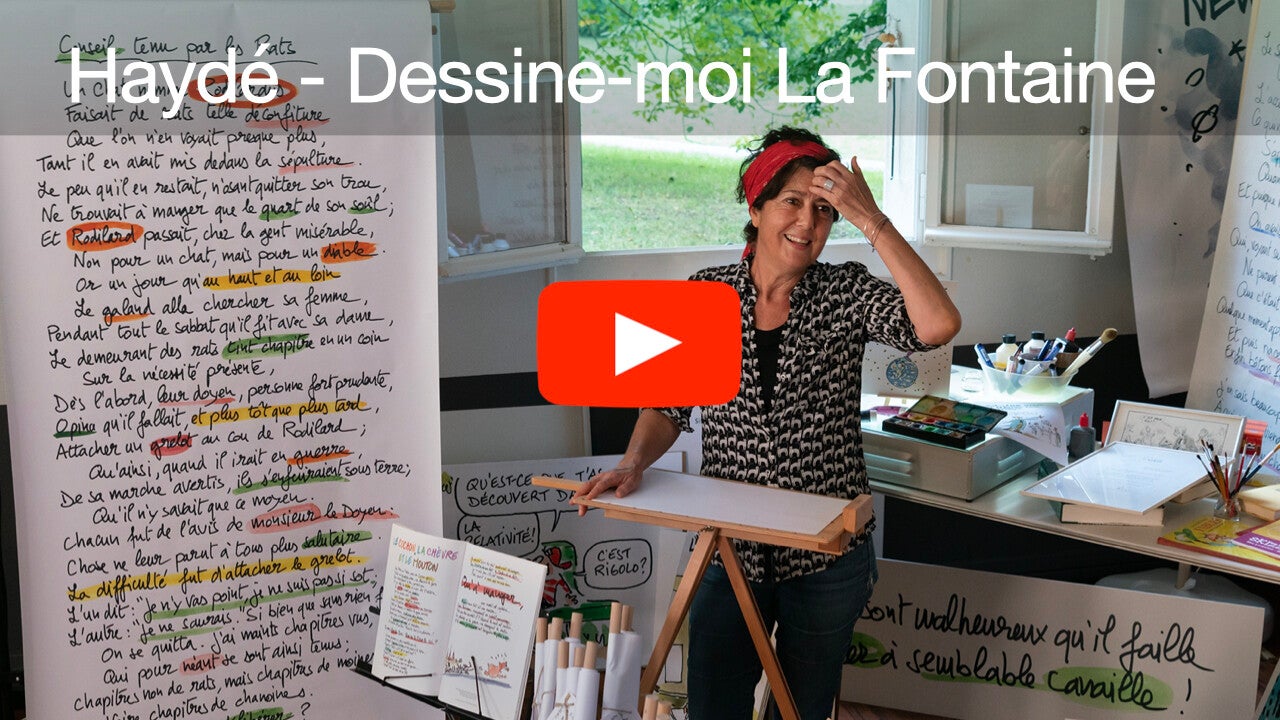 et une autre fois avec Haydé, la dessinatrice du chat Milton qui illustre la fable en direct.